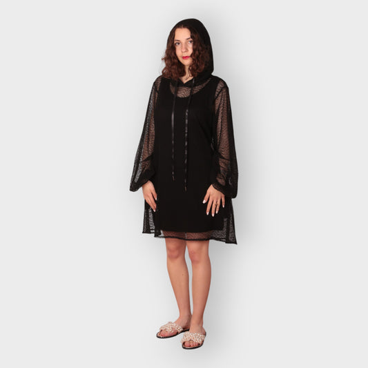 Aphrodite Black Holiday Resort Midi Dress With Hoodie Inclusive Plus Size Short Version