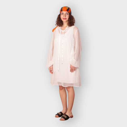 Aphrodite White Holiday Resort Midi Dress With Hoodie -Inclusive Plus Size up to UK 18 / US 14