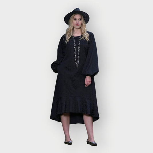 Aphrodite Black Leopard Jacquard Midi Dress -Inclusive Plus Size up to UK 24 / US 20
