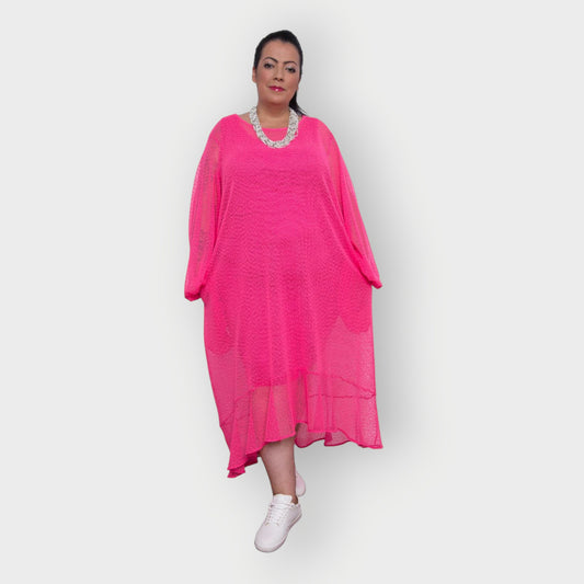 Aphrodite Hot Pink Holiday Resort Midi Dress With Hoodie Inclusive Plus Size Short Version