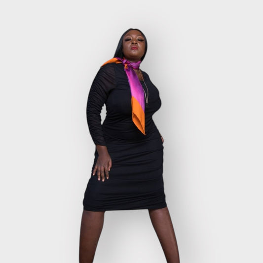 Boudicca Black Ruched Midi Dress-Inclusive Plus Size up to UK 20 / US 16