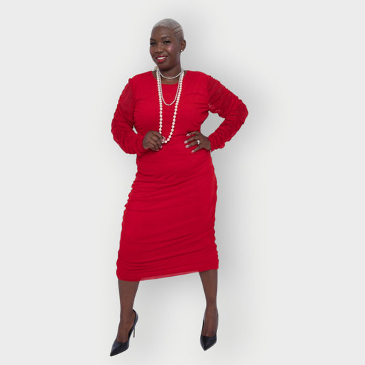 Boudicca Cardinal Red Ruched Midi Dress -Inclusive Plus Size up to UK 18 / US 14
