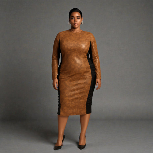 Cleopatra Chocolate Brown Vegan Leather Dress